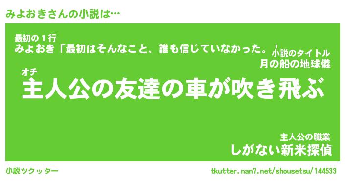 | 胡散臭い通販商品みたいなあだ名 | 『億万長者になれる水晶球…その名も「みよおき」』 |