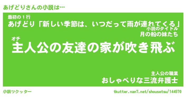 | 男性向けラノベタイトル風あだ名 | 『あげどりの憂鬱』 |