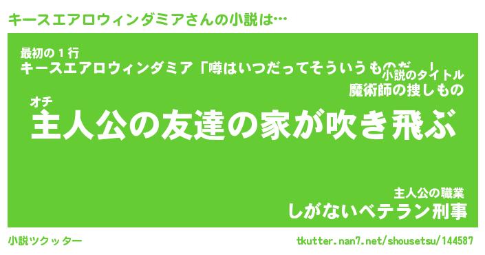 | 男性向けラノベタイトル風あだ名 | 『キースエアロウィンダミアアートオンライン』 |