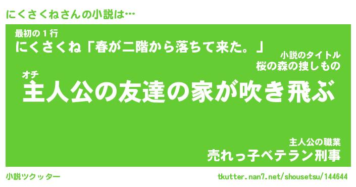 | 男性向けラノベタイトル風あだ名 | 『にくさくねの憂鬱』 |