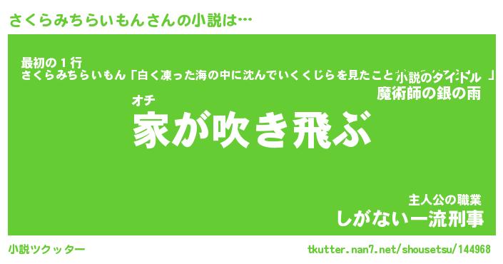 | 魚たちの銀の雨WW …「ケモノ」 | 10月27日 05:47 |