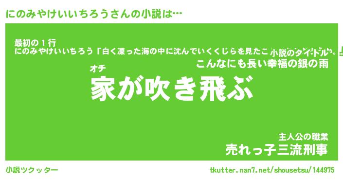 | 胡散臭い通販商品みたいなあだ名 | 『必ず成功するブレスレット…その名も「にのみやけいいちろう」』 |