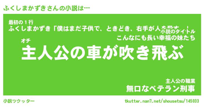 | 男性向けラノベタイトル風あだ名 | 『ふくしまかずきの憂鬱』 |