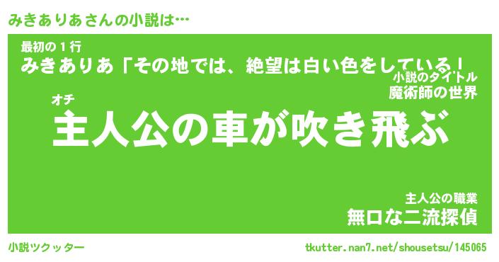 | 男性向けラノベタイトル風あだ名 | 『みきありあの憂鬱』 |