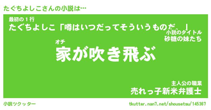 | 男性向けラノベタイトル風あだ名 | 『たぐちよしこの憂鬱』 |
