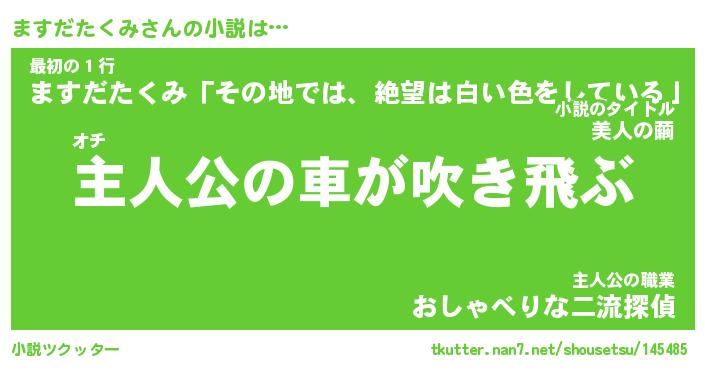 | 男性向けラノベタイトル風あだ名 | 『ますだたくみの憂鬱』 |