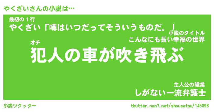 | 男性向けラノベタイトル風あだ名 | 『ヤクザイアートオンライン』 |