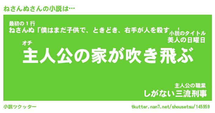 | 男性向けラノベタイトル風あだ名 | 『ねさんぬの憂鬱』 |