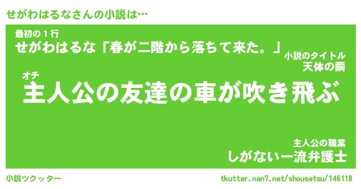 | 男性向けラノベタイトル風あだ名 | 『セガワハルナアートオンライン』 |