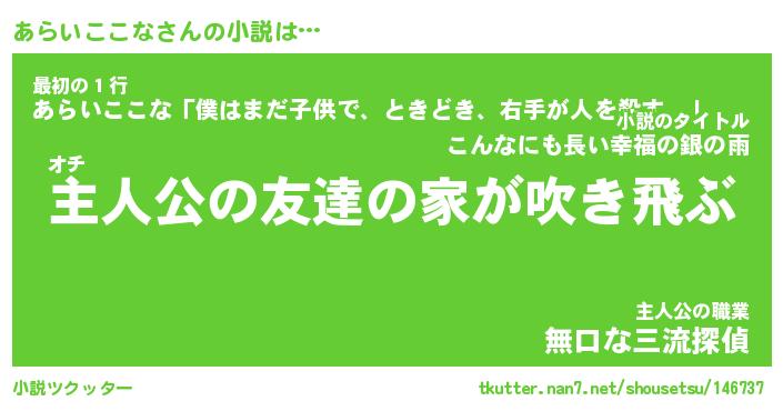 | 魚たちの銀の雨WW …「ケモノ」 | 10月27日 05:47 |