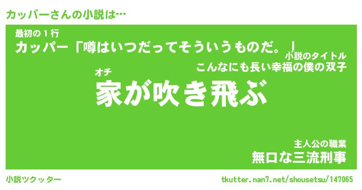 | 男性向けラノベタイトル風あだ名 | 『カッパーの憂鬱』 |