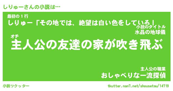| 男性向けラノベタイトル風あだ名 | 『しりゅーの憂鬱』 |