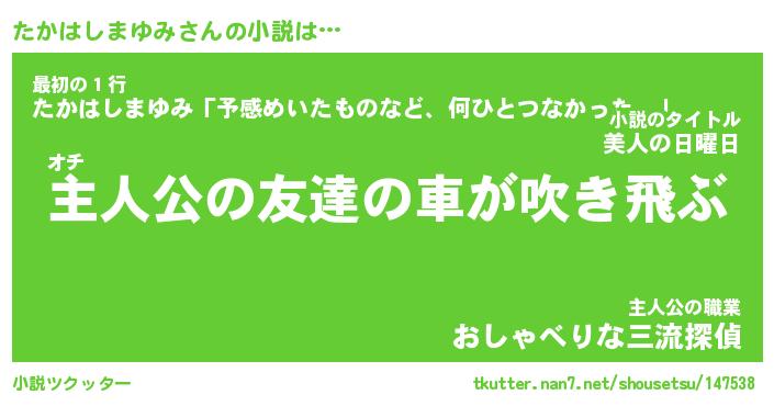 | 肩書あだ名 | 『たかはしまゆみ御曹司』 |