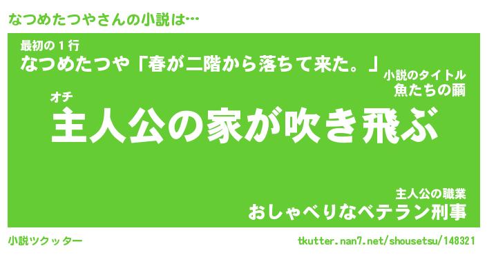 | 男性向けラノベタイトル風あだ名 | 『なつめたつやの憂鬱』 |