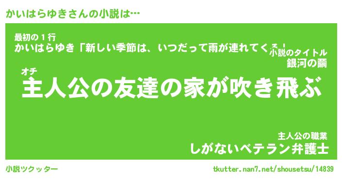 | 男性向けラノベタイトル風あだ名 | 『かいはらゆきの憂鬱』 |