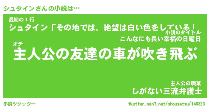 | 男性向けラノベタイトル風あだ名 | 『シュタインアートオンライン』 |
