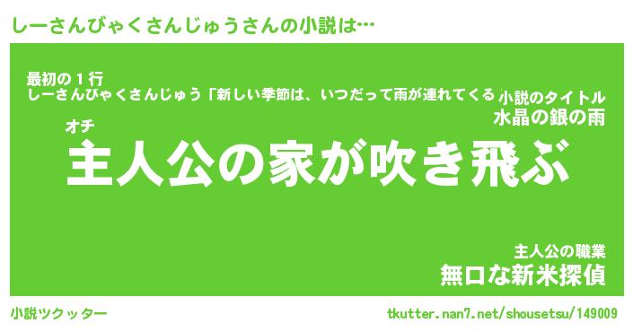 | 魚たちの銀の雨WW …「ケモノ」 | 10月27日 05:47 |