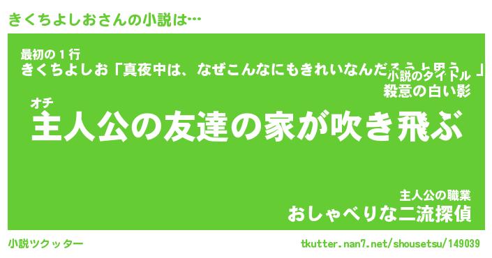 | 伝説のあだ名 | 『不死鳥のスナイパーきくちよしお』 |