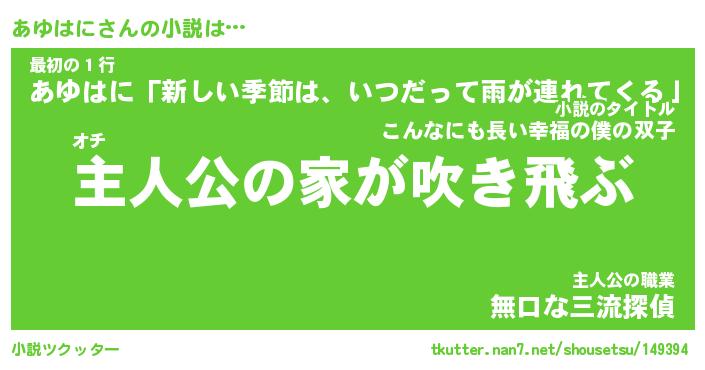 | 男性向けラノベタイトル風あだ名 | 『あゆはにの憂鬱』 |