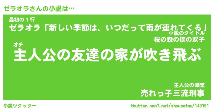 | 男性向けラノベタイトル風あだ名 | 『ゼラオラアートオンライン』 |