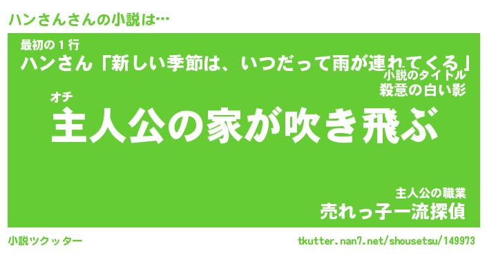 | 男性向けラノベタイトル風あだ名 | 『ハンさんの憂鬱』 |