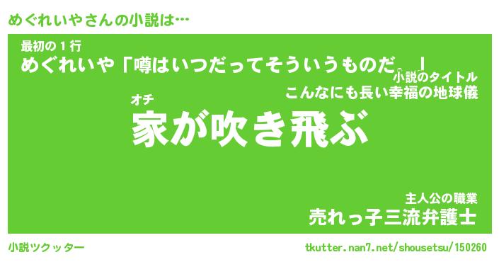| 胡散臭い通販商品みたいなあだ名 | 『必ず成功する霊験あらたかなお札…その名も「めぐれいや」』 |
