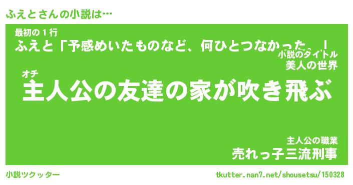 | 男性向けラノベタイトル風あだ名 | 『ふえとの憂鬱』 |