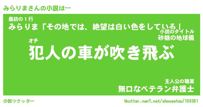 | 胡散臭い通販商品みたいなあだ名 | 『億万長者になれるブレスレット…その名も「みらりま」』 |