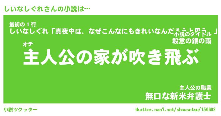 | 男性向けラノベタイトル風あだ名 | 『しいなしぐれの憂鬱』 |