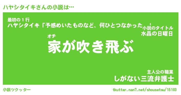 | 男性向けラノベタイトル風あだ名 | 『ハヤシタイキの憂鬱』 |