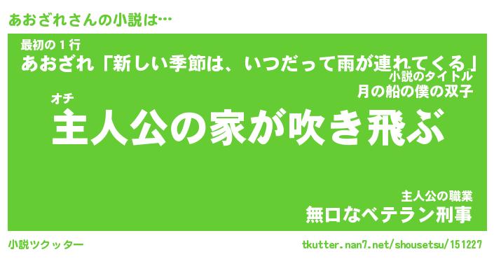 | 男性向けラノベタイトル風あだ名 | 『あおざれの憂鬱』 |