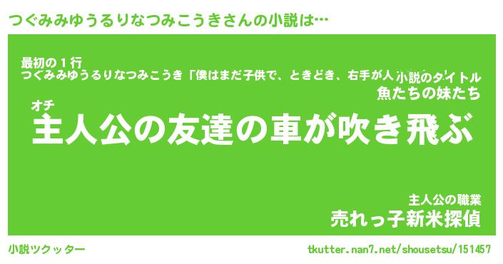 | 胡散臭い通販商品みたいなあだ名 | 『モテモテ間違いなしブレスレット…その名も「つぐみみゆうるりなつみこうき」』 |