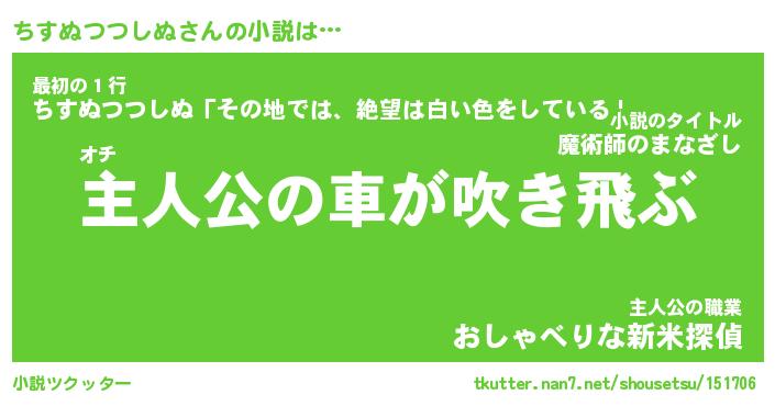 | 男性向けラノベタイトル風あだ名 | 『ちすぬつつしぬの憂鬱』 |