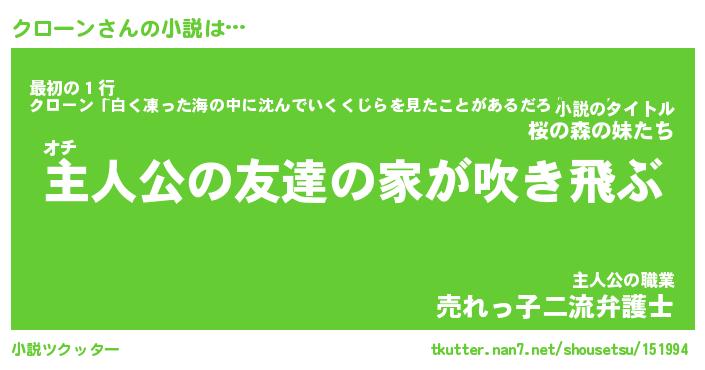 | 男性向けラノベタイトル風あだ名 | 『クローンアートオンライン』 |