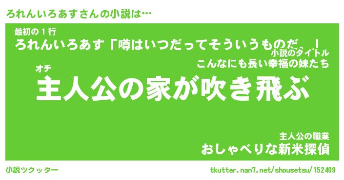 | 男性向けラノベタイトル風あだ名 | 『ろれんいろあすの憂鬱』 |