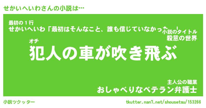 | 男性向けラノベタイトル風あだ名 | 『セカイヘイワアートオンライン』 |