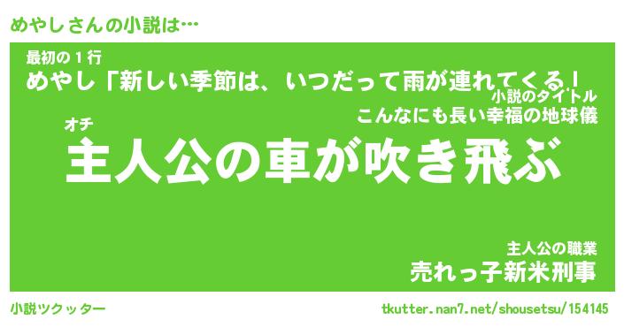 | 男性向けラノベタイトル風あだ名 | 『めやしの憂鬱』 |