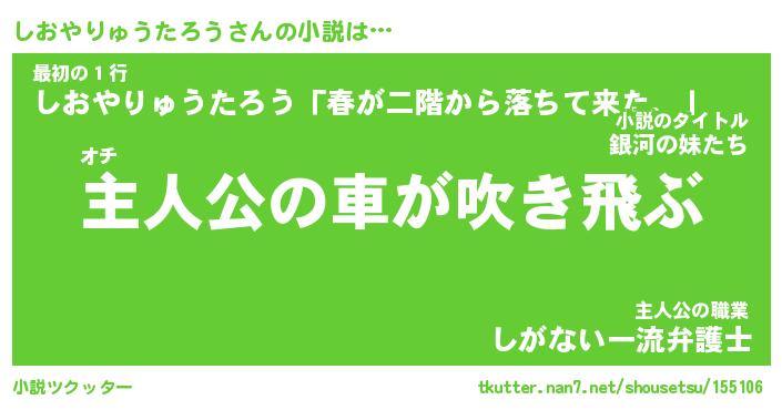 | 肩書あだ名 | 『しおやりゅうたろう御曹司』 |