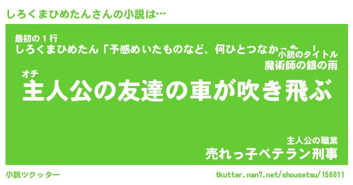 | 魚たちの銀の雨WW …「ケモノ」 | 10月27日 05:47 |