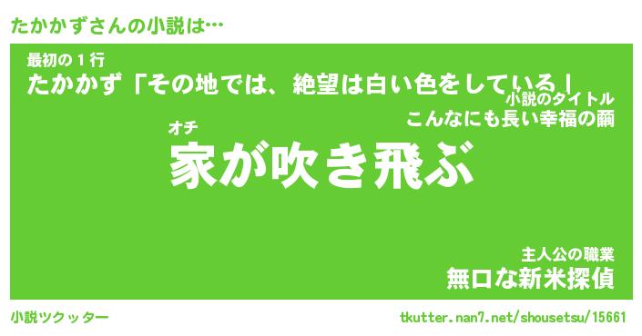 | 男性向けラノベタイトル風あだ名 | 『たかかずの憂鬱』 |