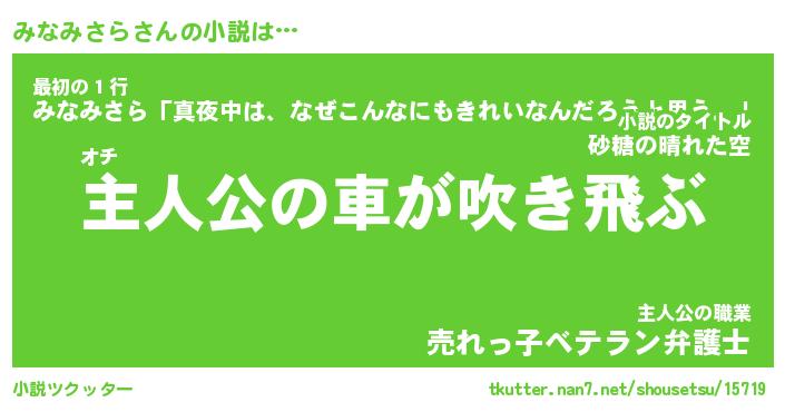 | 男性向けラノベタイトル風あだ名 | 『みなみさらの憂鬱』 |
