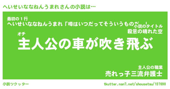 | 男性向けラノベタイトル風あだ名 | 『へいせいななねんうまれの憂鬱』 |