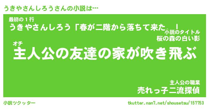 | 男性向けラノベタイトル風あだ名 | 『うきやさんしろうの憂鬱』 |