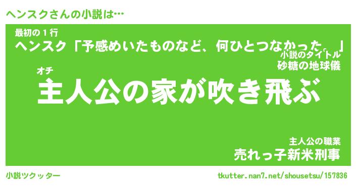 | 男性向けラノベタイトル風あだ名 | 『ヘンスクの憂鬱』 |