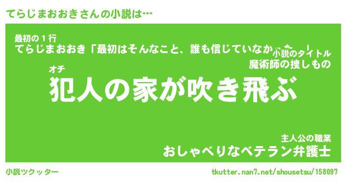 | 男性向けラノベタイトル風あだ名 | 『テラジマオオキアートオンライン』 |