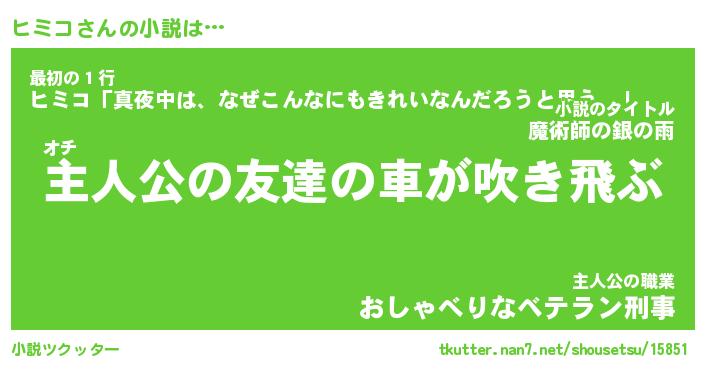 | 魚たちの銀の雨WW …「ケモノ」 | 10月27日 05:47 |