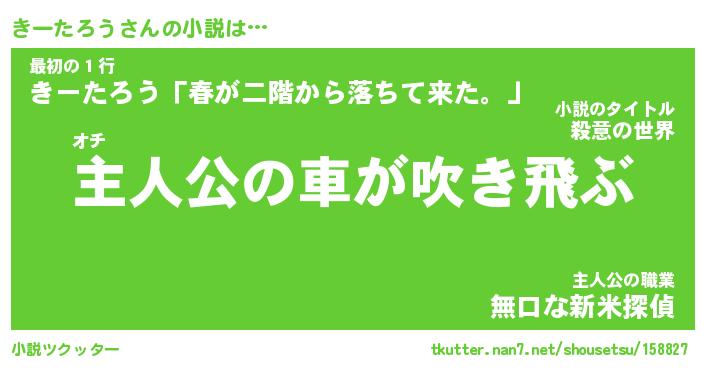 | 男性向けラノベタイトル風あだ名 | 『きーたろうの憂鬱』 |