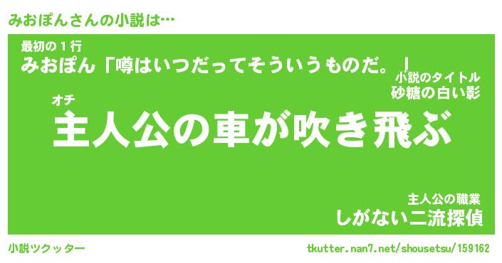 | 男性向けラノベタイトル風あだ名 | 『みおぽんの憂鬱』 |