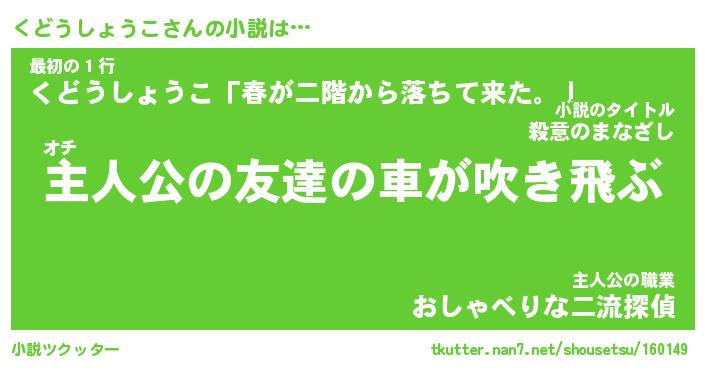 | 男性向けラノベタイトル風あだ名 | 『クドウショウコアートオンライン』 |