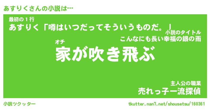 | 魚たちの銀の雨WW …「ケモノ」 | 10月27日 05:47 |